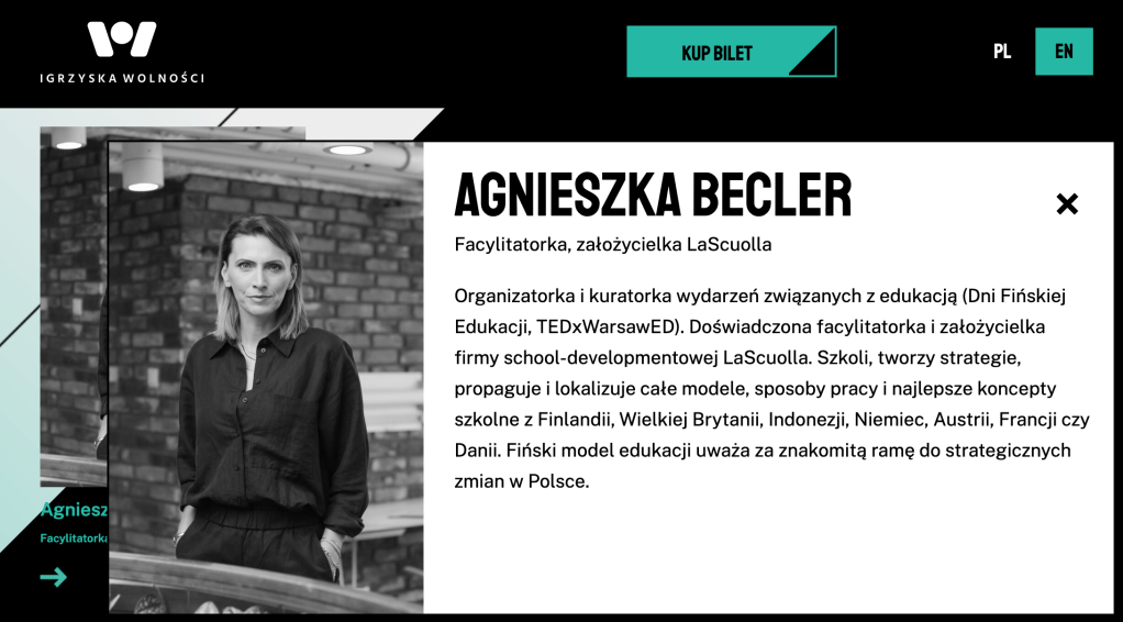Na Igrzyskach Wolności 2025 Agnieszka Becler opowiadała o fińskim modelu edukacji w panelu „Państwo, które działa: Polityka edukacyjna Finlandii”.