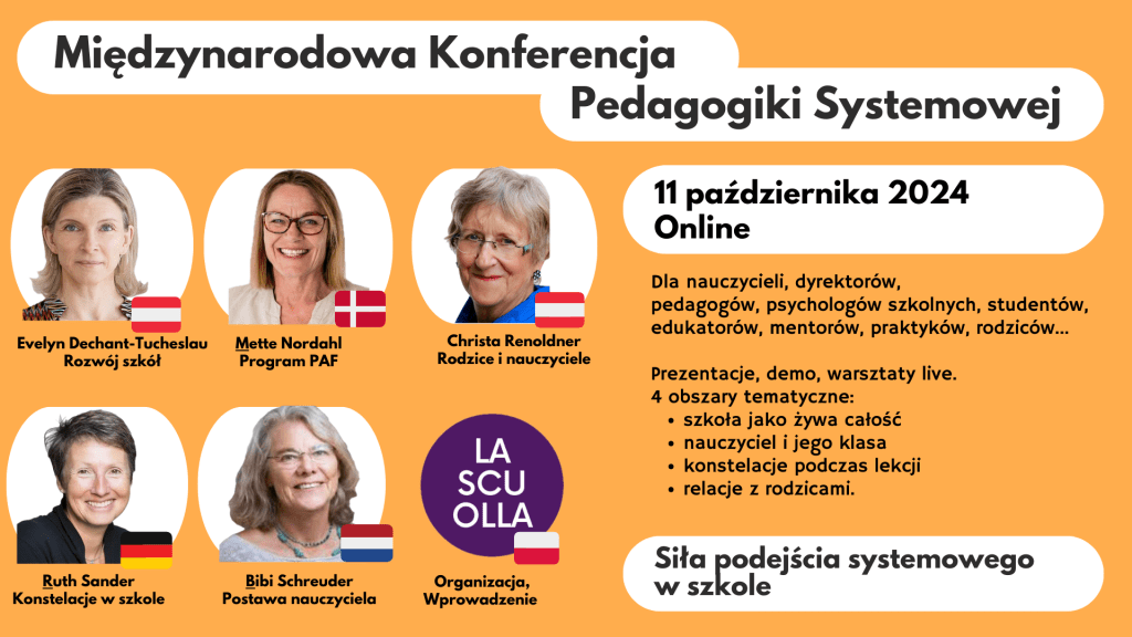 Zapraszamy na Międzynarodową Konferencję Pedagogiki Systemowej pt. „Siła podejścia systemowego w szkole”. Doświadczeniem podzieli się grono uznanych ekspertów i trenerów z Austrii, Danii, Holandii i Niemiec.